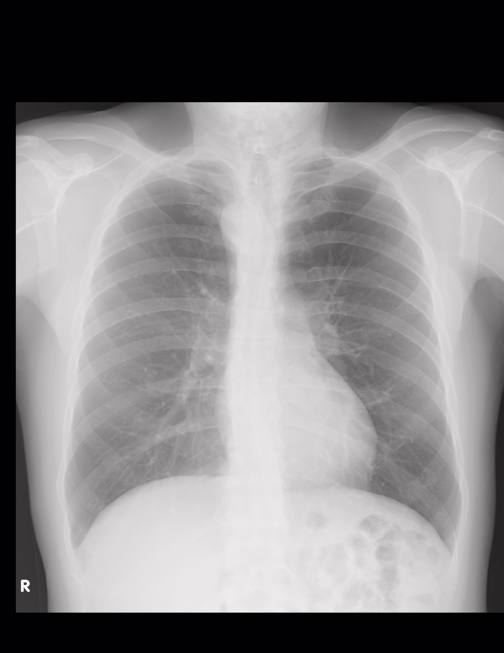 -Corazón, central, con índice cardiotorácico menor a 0.5
