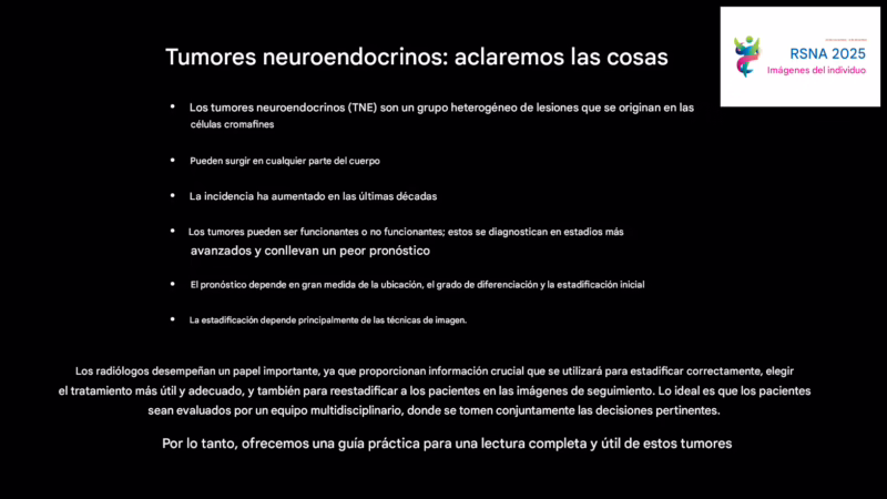 Desempeña un papel fundamental en el tratamiento de los TNE. Por lo tanto, es de suma importancia poder interpretar las imágenes y correlacionar sus hallazgos con las técnicas anatómicas y la información clínica.