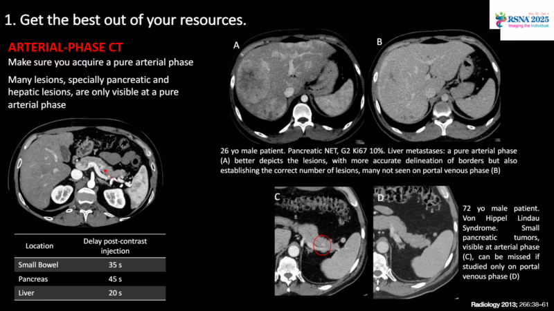Muchas lesiones, especialmente las pancreáticas y hepáticas, solo son visibles en una fase arterial pura