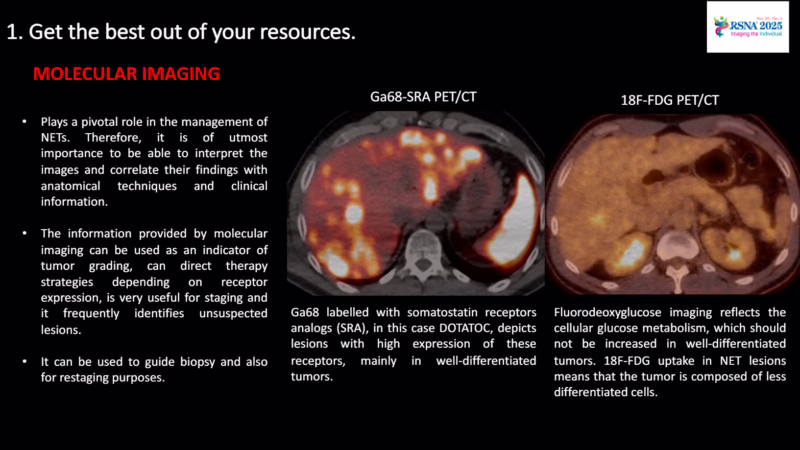 El Ga68 marcado con análogos de los receptores de somatostatina (SRA), en este caso DOTATOC, muestra lesiones con alta expresión de estos receptores, principalmente en tumores bien diferenciados.